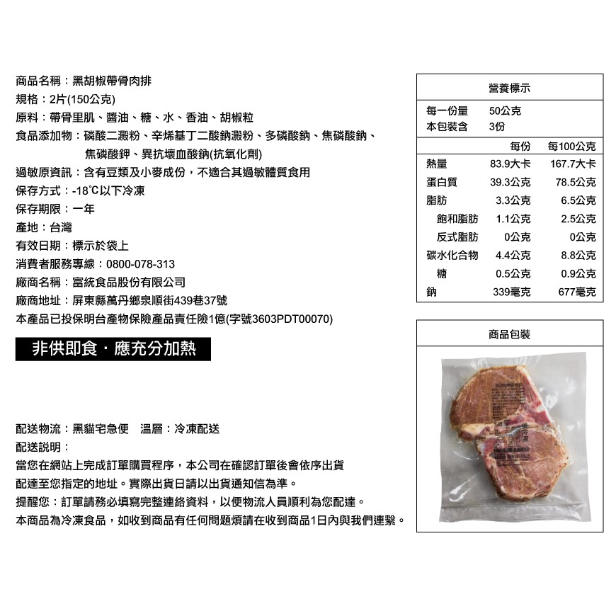 【富統食品】黑胡椒帶骨肉排 2片/150g/包//【富統食品】黑胡椒帶骨肉排 2片/150g/包//MeatFUTONG富統食品官方網路商店