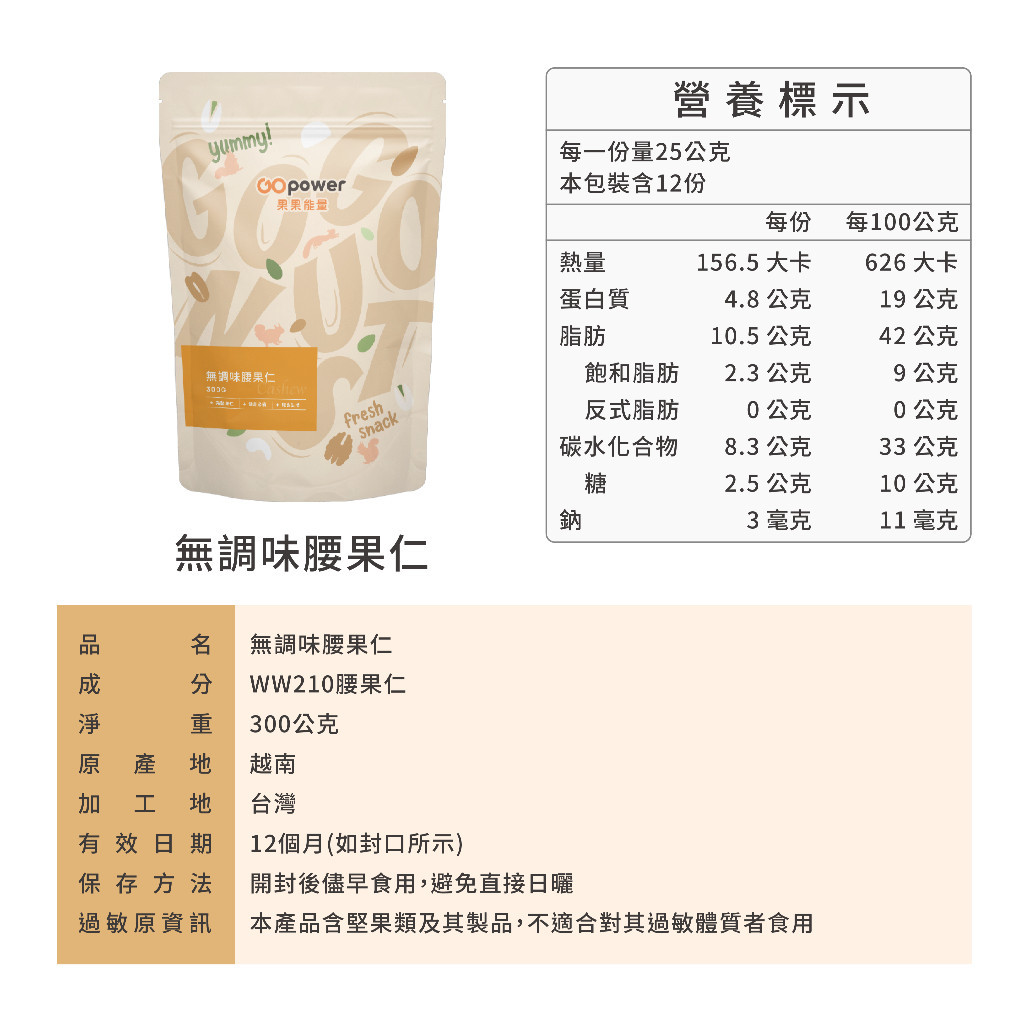 果果能量 無調味腰果仁 (300g/包)|果果能量官方旗艦店300克NutsGOpower果果能量官方店