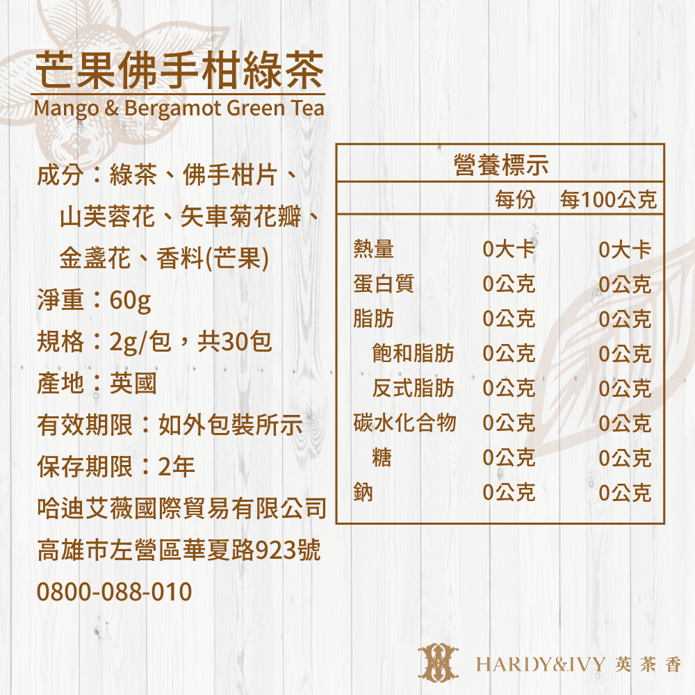 英茶香|NO.53 芒果佛手柑綠茶罐 (30入) 三角茶包英茶香|NO.53 芒果佛手柑綠茶罐 (30入) 三角茶包Tea & Tea BagsHardy & Ivy 英茶香 官方商城