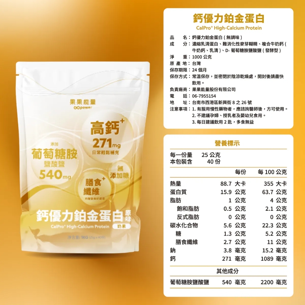 果果能量 鈣優力鉑金蛋白 加鈣配方-原味無加糖 1kg|無調味乳清蛋白粉 加纖加鈣|果果能量官方旗艦鈣優力鉑金蛋白Powdered Drink MixesGOpower果果能量官方店