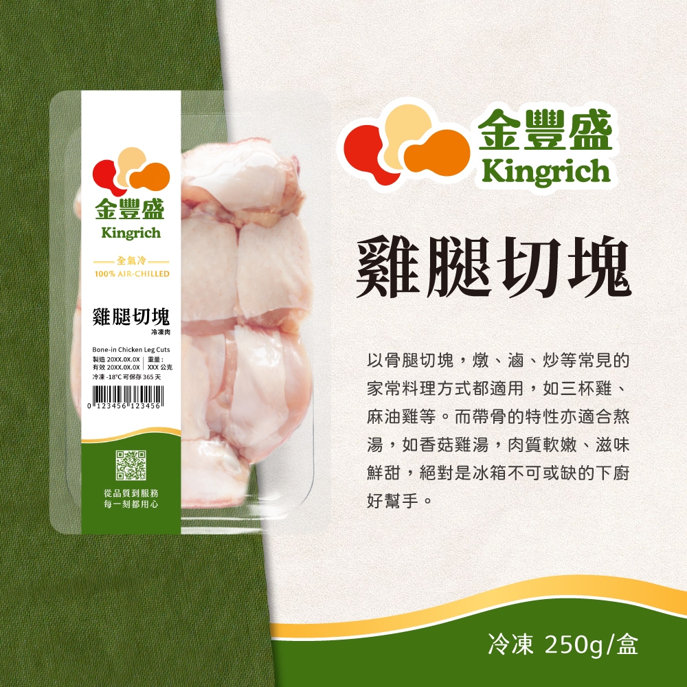 【金豐盛】雞腿切塊 250g/盒 快炒燉煮都合宜 完整產銷履歷驗證 100%全氣冷雞【金豐盛】雞腿切塊 250g/盒 快炒燉煮都合宜 完整產銷履歷驗證 100%全氣冷雞MeatKingrich 金豐盛