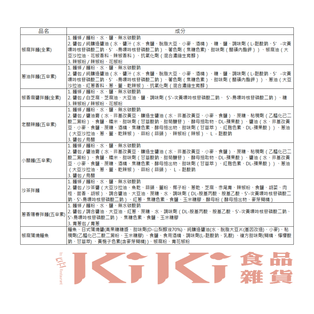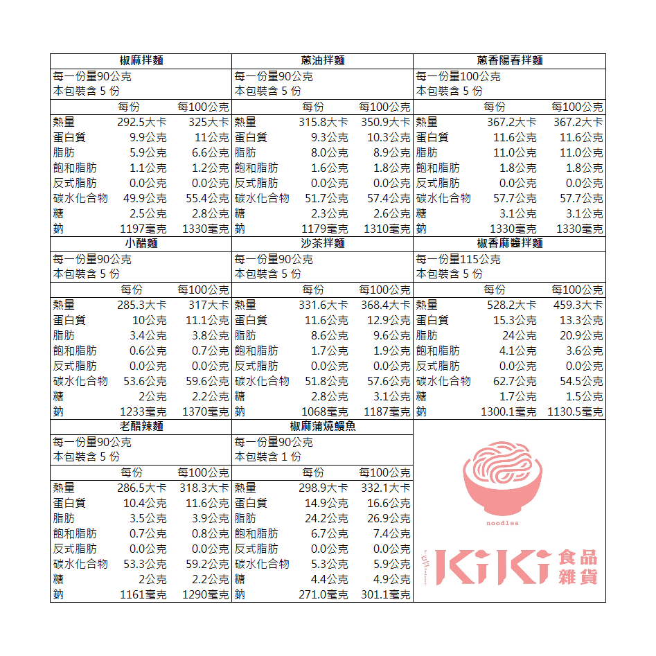 【KiKi】KiKi拌麵全口味組合包(小醋、沙茶、老醋、椒麻、椒香麻醬、蔥油、蔥香陽春)七種口味一次擁有KiKi拌麵全口味組合包|KiKi拌麵全口味組合包+椒麻蒲燒鰻NoodlesKiKi食品雜貨旗艦店