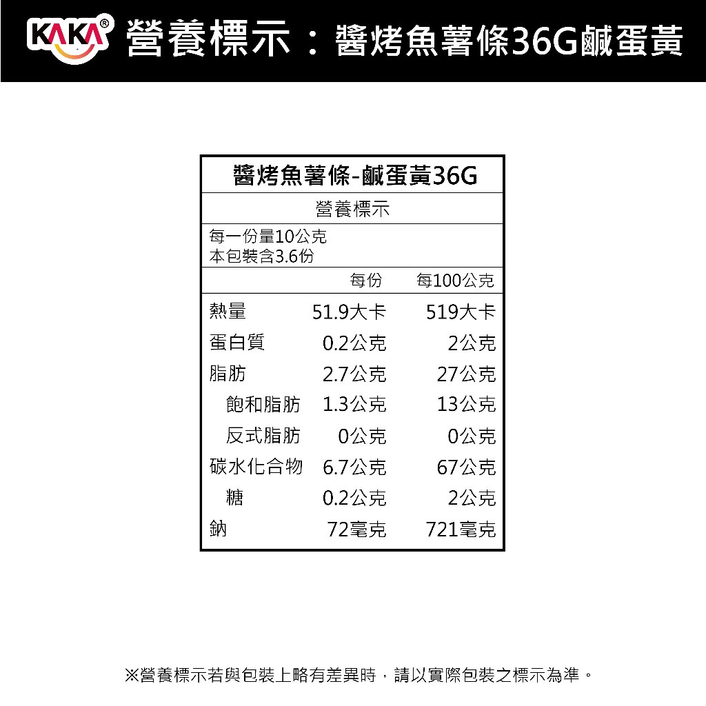 KAKA 醬烤魚薯條 36g 鹹蛋黃 ❘ 追劇零食