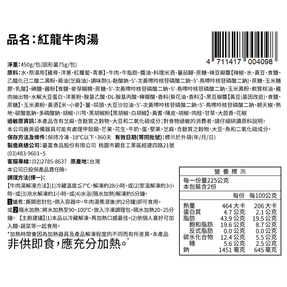【紅龍】牛肉湯15包組 (450g/包(固形量75g/包))15包組Frozen Processed FoodKKLife|紅龍官方直營店