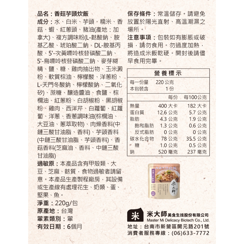 【米大師】櫻花蝦油飯/香菇芋頭炊飯 (常溫|油飯|炊飯|調理食品|微波|即食|方便食品)櫻花蝦油飯(單包入)|櫻花蝦油飯(3包入)|香菇芋頭炊飯(單包入)|香菇芋頭炊飯(3包入)Cooked FoodMaster Mi 米大師官方商城