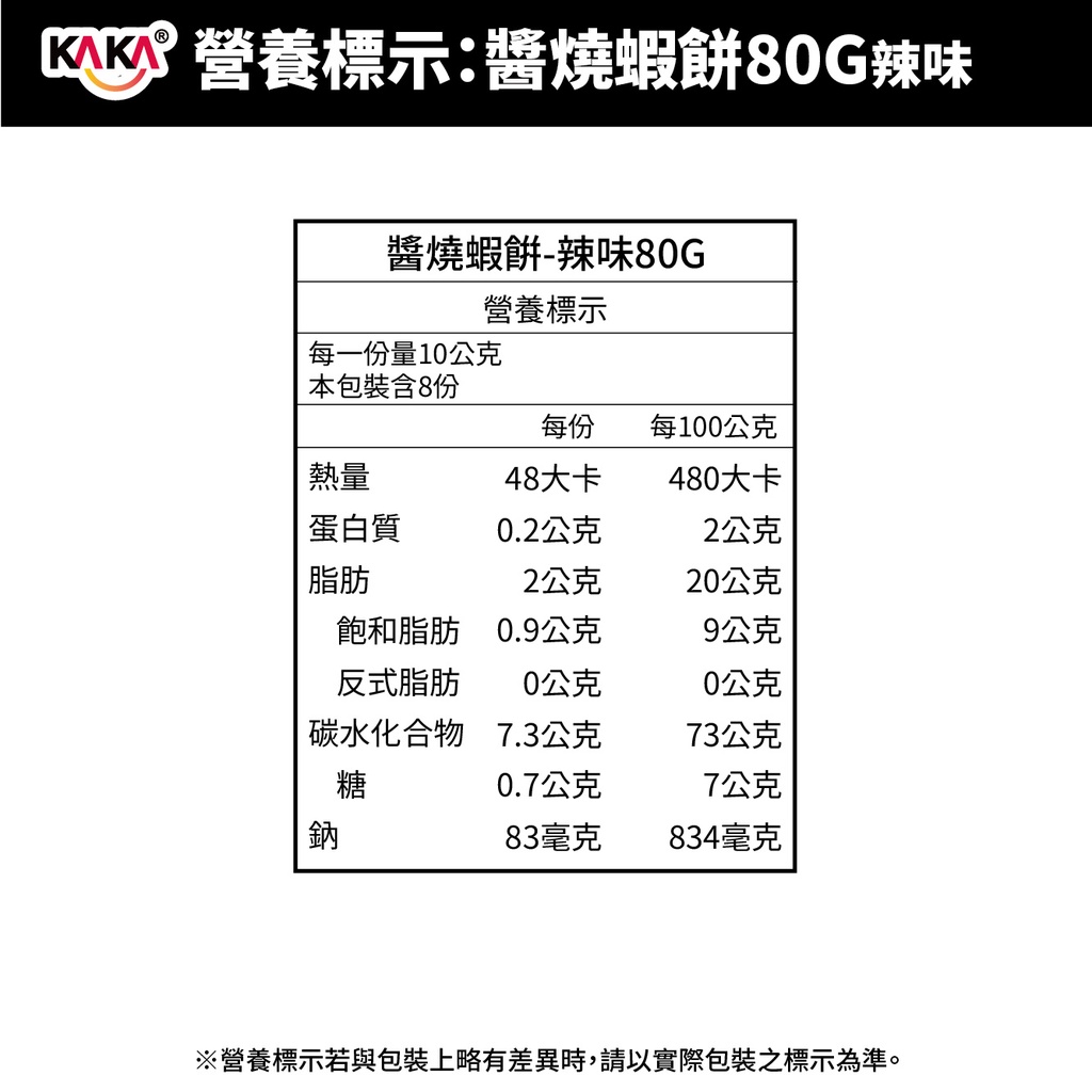 KAKA 醬燒蝦餅 80g 辣味 ❘ 台南蝦餅 伴手禮 安平 零食KAKA 醬燒蝦餅 80g 辣味 ❘ 台南蝦餅 伴手禮 安平 零食Chips & CrispsKAKA海洋燒官方旗艦店
