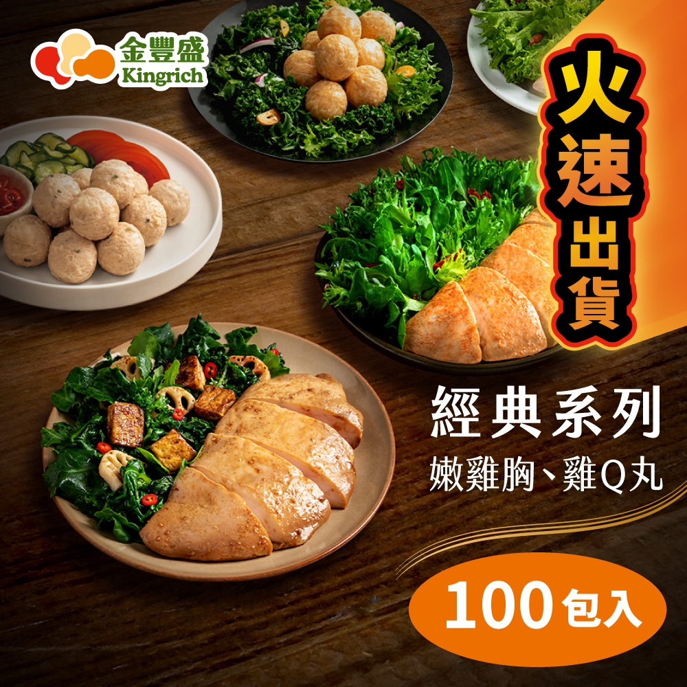【金豐盛】經典系列任選100包優惠價(即食雞胸肉/鹽麴/椒麻/香草/蒜鹽/香滷,雞Q丸/蒜辣/薑蔥)快速出貨【金豐盛】經典香滷嫩雞胸 100公克/包|【金豐盛】經典蒜鹽嫩雞胸 100公克/包|【金豐盛】經典椒麻嫩雞胸 100公克/包|【金豐盛】經典香草嫩雞胸 100公克/包|【金豐盛】經典鹽麴嫩雞胸 100公克/包|【金豐盛】經典蒜辣雞Q丸 120公克/包|【金豐盛】經典薑蔥雞Q丸 120公克/包MeatKingrich 金豐盛