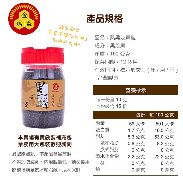 【金潤益】黑芝麻粒 150g|熟黑芝麻粒 精緻罐裝|可灑飯上食用|黑芝麻粒 黑麻粒|金瑞益金瑞益 黑芝麻粒 150g|罐裝|金瑞益 白芝麻粒150g|罐裝|活動品|黑麻粒150g|效250626Dried GoodsKREFOOD金潤益食品官方旗艦店