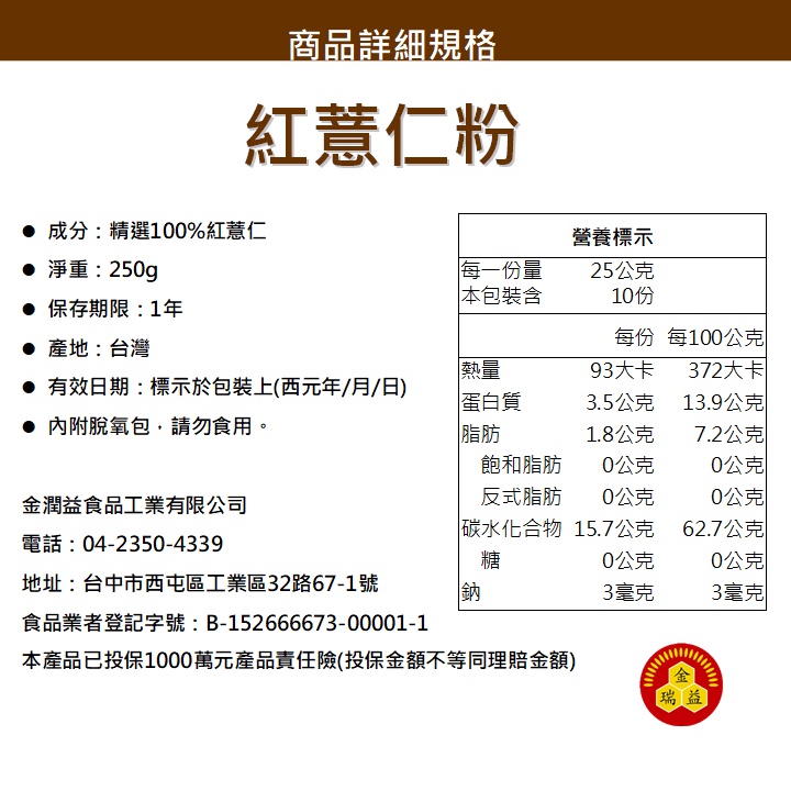 【金潤益】純 紅薏仁粉 250g 無糖|純穀粉 紅薏仁 薏仁 薏仁粉 純天然 無添加|金瑞益 穀粉紅薏仁粉 250g|2025/12|紅薏仁粉 250g*2包|2025/12Powdered Drink MixesKREFOOD金潤益食品官方旗艦店