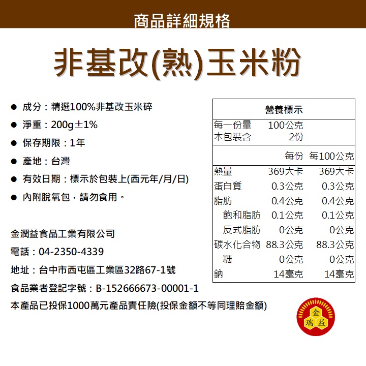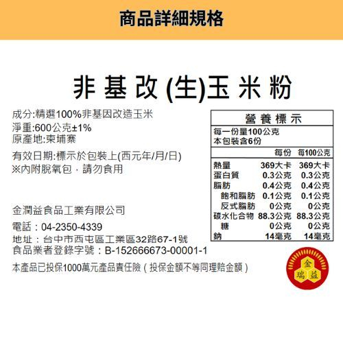 【金瑞益】(生) 玉米粉 600g / (熟) 玉米粉 200g|純 非基改 夾鏈包|無添加 玉米麵粉|金潤益【熟】玉米粉 200g|【生】玉米粉 600gFlourKREFOOD金潤益食品官方旗艦店