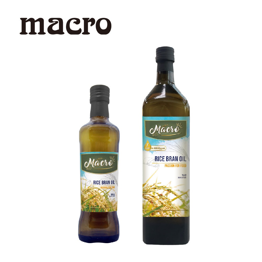 【MACRO 馬可】 100%純正統天然玄米油 愛美食 泰國原裝進口 適合煎煮炒炸 |廣紘直營1L|500mlOilMACRO_生酮、烘焙、進口食材、健康食材、減糖 廣紘原廠直營