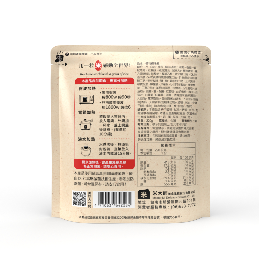 【米大師】櫻花蝦油飯 (常溫|油飯|炊飯|調理食品|微波|即食|方便食品)單包入(效期至2025.11)|3包入(效期至2025.11)Cooked FoodMaster Mi 米大師官方商城