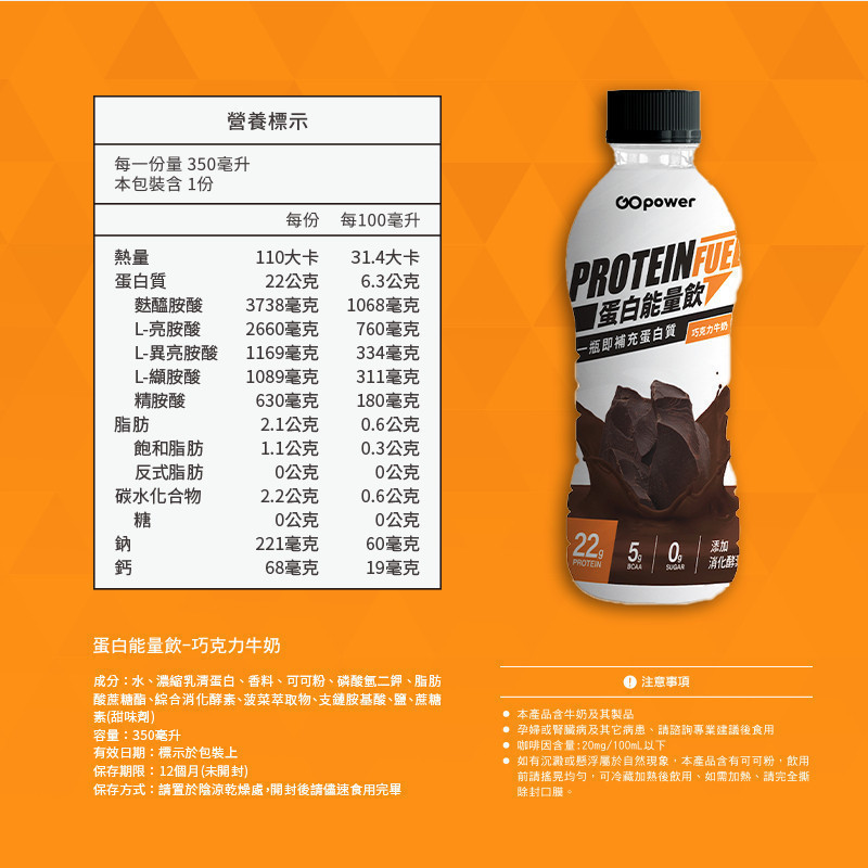 果果能量 Whey Protein 蛋白能量飲 巧克力風味 (350ml/瓶)|果果能量官方旗艦店巧克力牛奶(整箱請選12入)Energy & Isotonic DrinksGOpower果果能量官方店