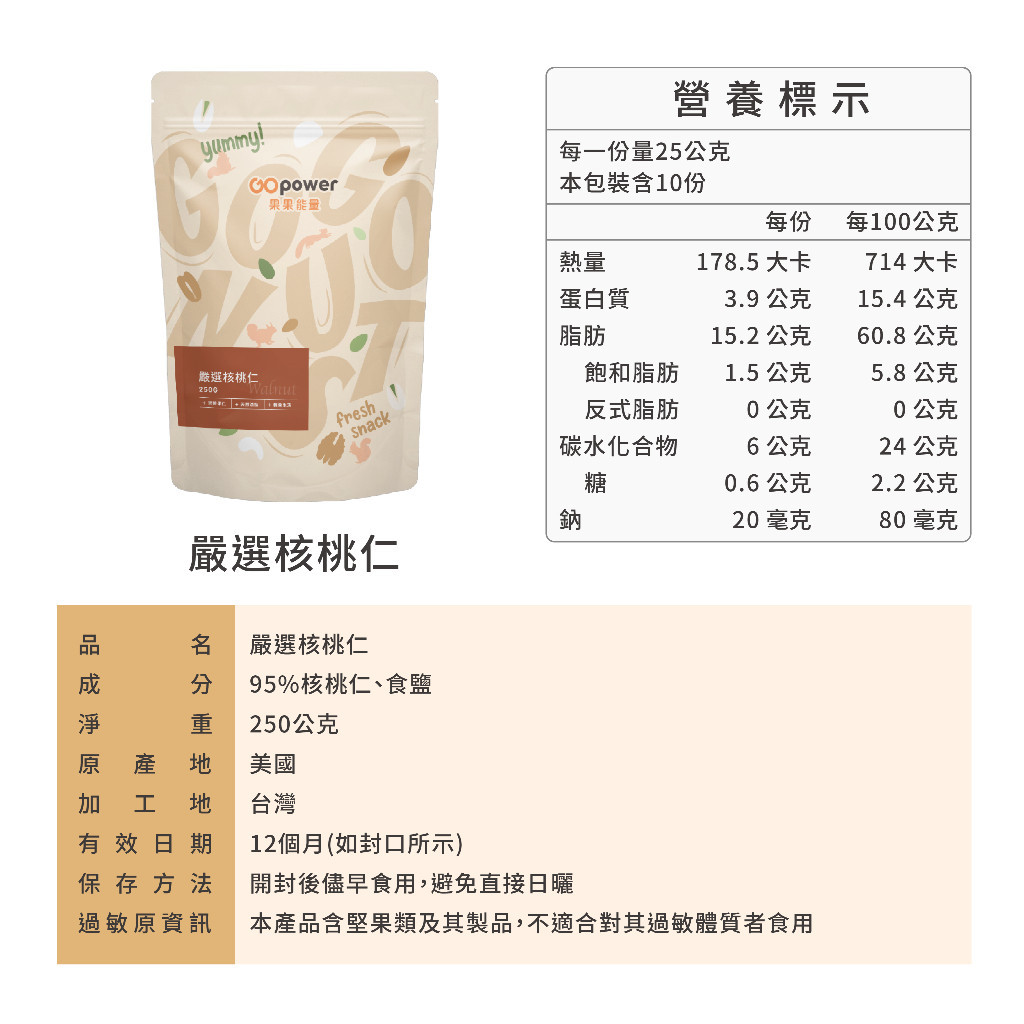 果果能量 嚴選核桃仁 (250g/包)|果果能量官方旗艦店250克NutsGOpower果果能量官方店
