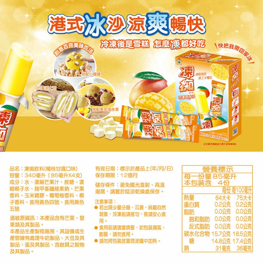 【旺旺】凍痴飲料-楊枝甘露口味(85ml x4支/盒)(多規格) | 90%芒果綜合原汁 | 濃郁滋味一吃就上癮6盒優惠組|12盒超值組Juice & Juice VinegarHurrybuy快點購旗艦店