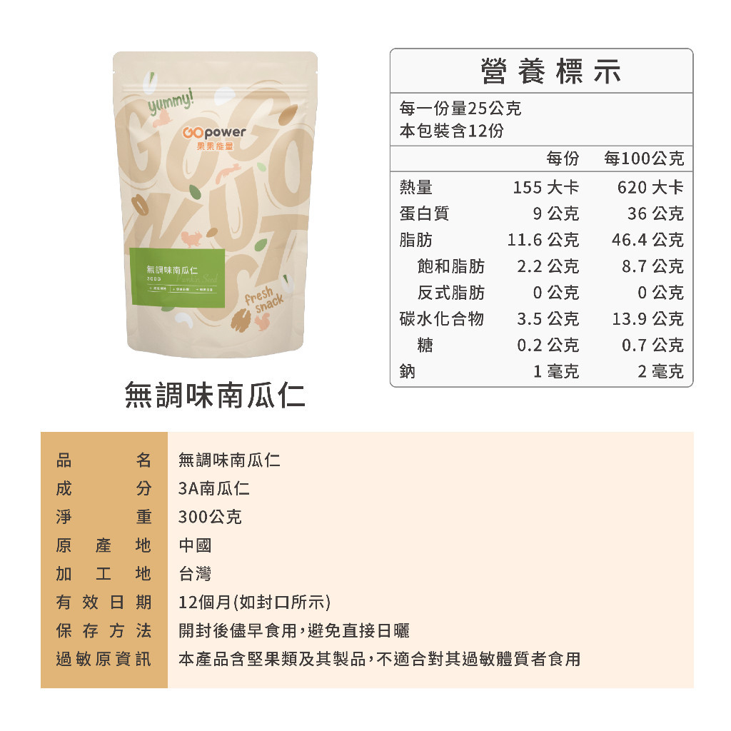 果果能量 無調味南瓜仁 (300g/包)|果果能量官方旗艦店300克NutsGOpower果果能量官方店