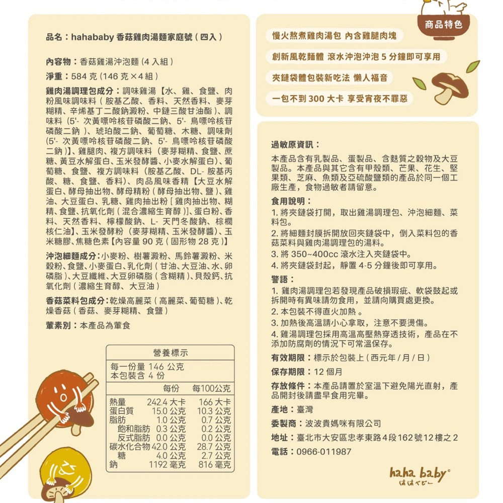 【hahababy】香菇雞湯麵-四入盒裝【hahababy】香菇雞湯麵-四入盒裝Instant Noodleshahababy 品牌直營店