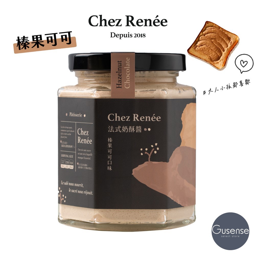 Chez Renée 榛果可可法式奶酥醬 抹醬 牛奶巧克力 巧克力 吐司 貝果 可頌 Gusense Select 現貨效期至2025-11-09|兩入禮盒⭐需選購2罐奶酥⭐禮盒需自行組裝Jam & SpreadHario Cores 芮妮奶酥醬 品牌旗艦店【Gusense Select】