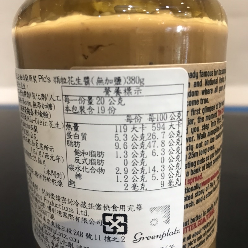 紐西蘭原裝PIC’s Hi-Oleic 花生醬 380g[JENPIN 饌]柔滑花生醬380g|顆粒花生醬380g|柔滑無鹽花生醬380g|顆粒無鹽花生醬380g|柔滑花生醬 2026/2/1到期Jam & Spreadjenpin_oil 甄品油舖