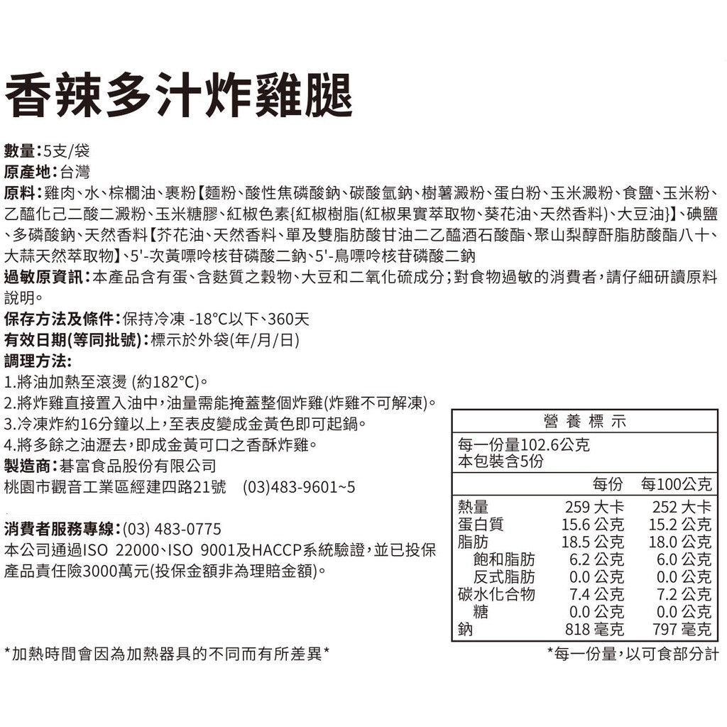 【紅龍】香辣多汁炸雞腿 (5支/袋)1袋Processed Meat & SeafoodKKLife|紅龍官方直營店
