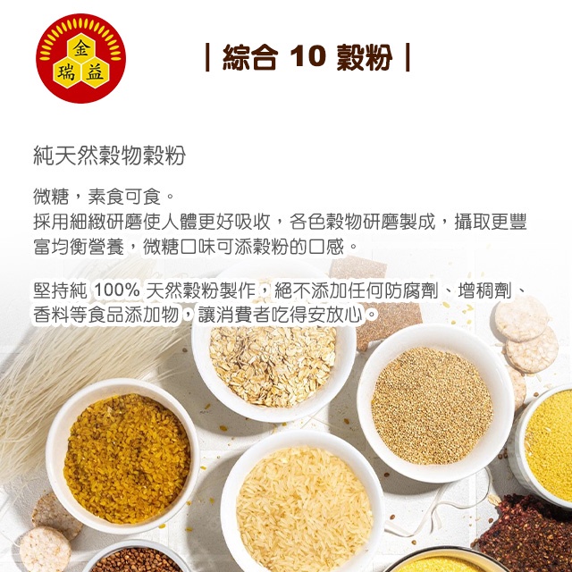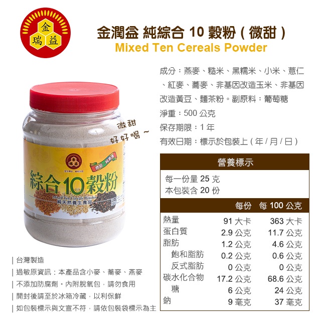 【金潤益】 綜合10穀粉 (微甜) 500g|純 穀粉 沖泡穀粉 十穀粉 無其他添加|金瑞益綜合10穀粉500g|罐裝Cereal, Granola & OatsKREFOOD金潤益食品官方旗艦店