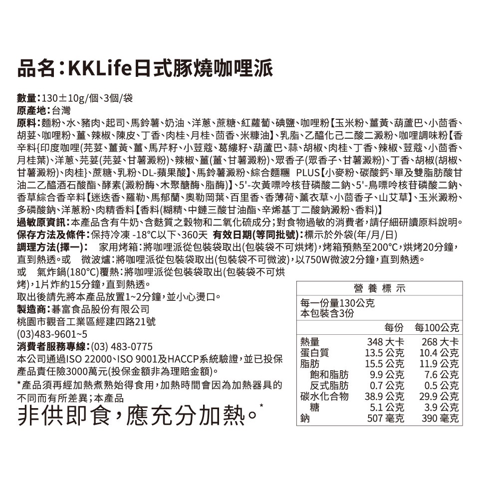 【KKLife】香酥鹹派6袋組 日式豚燒咖哩/火腿起司/田園南瓜/白醬松露(130±10g/個,3個/袋)【蝦皮團購】咖哩2起司2南瓜1蕈菇1|咖哩3起司3Frozen Processed FoodKKLife|紅龍官方直營店
