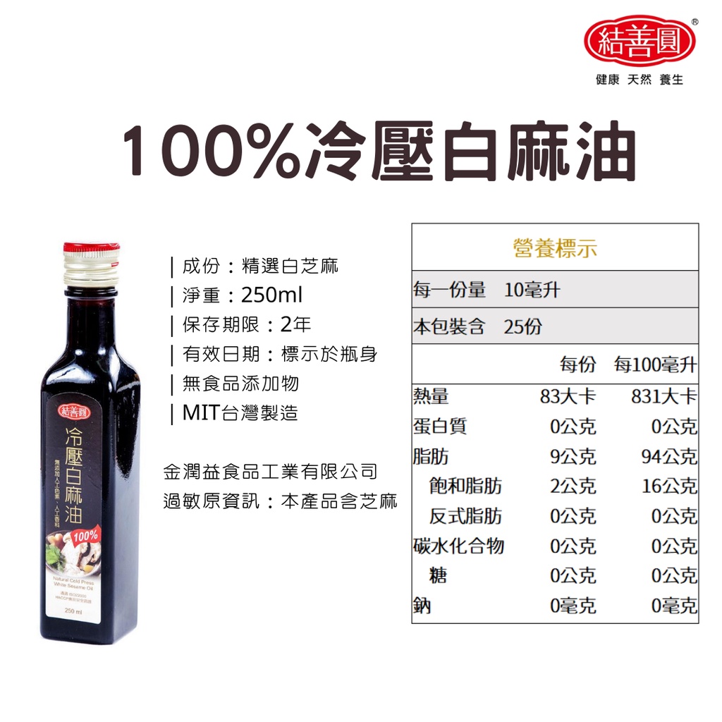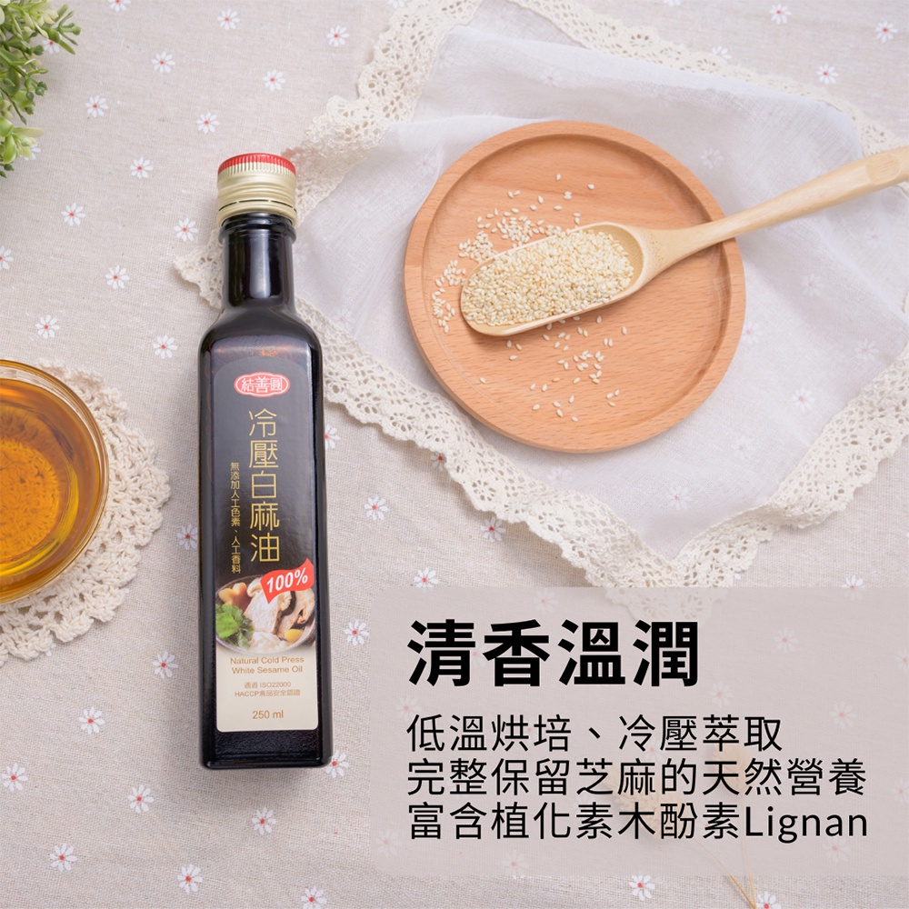 【金潤益】 冷壓白麻油 250ml|冷壓 白麻油 麻油 初榨|冷壓油 芝麻油 白芝麻油 油品|結善圓冷壓白麻油 250ml|2026/10OilKREFOOD金潤益食品官方旗艦店