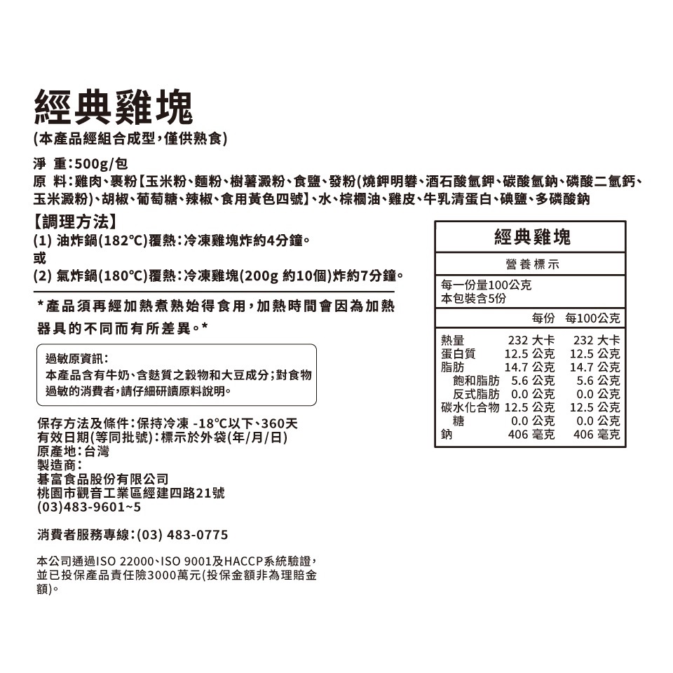 【贈品】【紅龍】經典原味雞塊(500g/包)1包Processed Meat & SeafoodKKLife|紅龍官方直營店