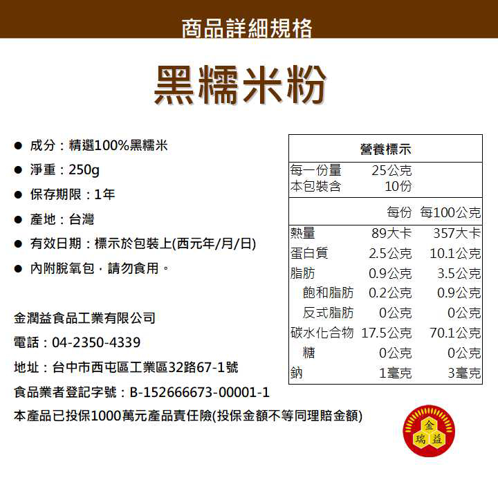 【金瑞益】純 黑糯米粉 250g 無糖|穀粉 黑糯米 紫米粉 紫米 夾鏈包裝|直接沖泡 金潤益黑糯米粉 250g【無糖】Cereal, Granola & OatsKREFOOD金潤益食品官方旗艦店