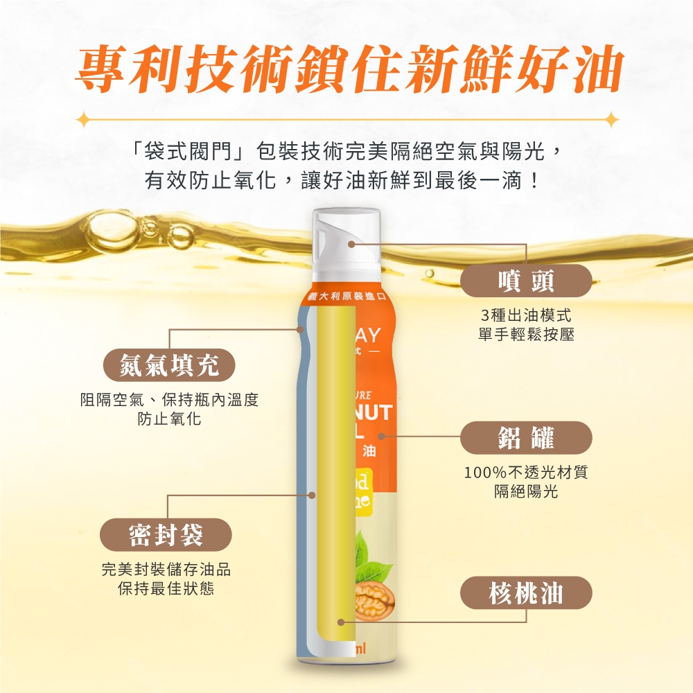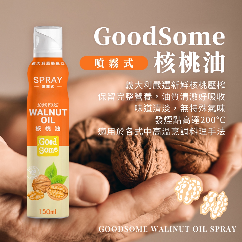 【GoodSome 陳桑灶咖】義大利 噴霧式100%核桃油 原瓶進口(150ml*1/2入)1入|2入(特價中)|4入OilGoodSome 陳桑灶咖|滿福實業