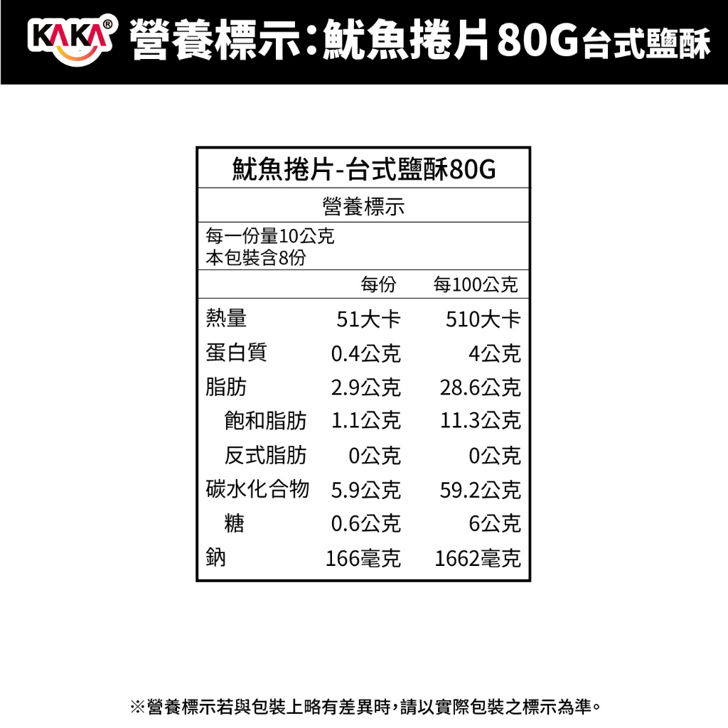 KAKA 魷魚捲片 80g 台式鹽酥/義式披薩 ❘ 追劇零食台式鹽酥|義式披薩Dried SnacksKAKA海洋燒官方旗艦店