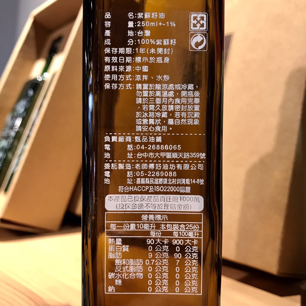 甄品饌 紫蘇籽油 250ml甄品饌 紫蘇籽油 250mlOiljenpin_oil 甄品油舖