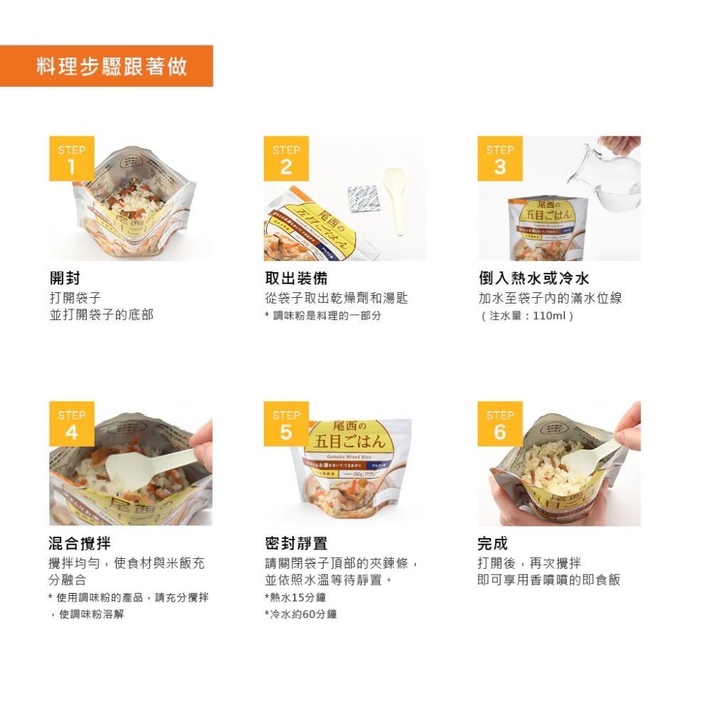 尾西Onisi 乾燥飯 日本製造 保存期限五年 冷熱水沖泡 登山 防災【一次買10包,現折$50】即時飯-五目蔬菜風味2030.09|即時飯-五目什錦風味2030.09|即時飯-雞肉風味2030.09|即時飯-咖哩風味2030.09|飯糰-昆布風味2030.09|飯糰-鮭魚風味2030.09|飯糰-什錦風味2030.09|飯糰-海帶芽風味2030.09|即時飯-蝦仁風味2030.09|即時飯-松茸風味2030.09|即時飯-竹筍風味2030.09|即時飯-紅豆風味|即時飯-海帶芽風味2030.09|即時飯-白飯2030.09Instant Rice & PorridgeHME戶外裝備