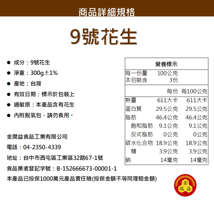 【金瑞益】台灣嚴選 9號花生 300g|台灣花生 花生 原味花生 帶殼花生|堅果 金潤益9號花生 300g|袋裝NutsKREFOOD金潤益食品官方旗艦店