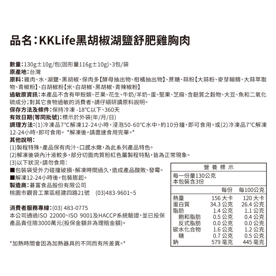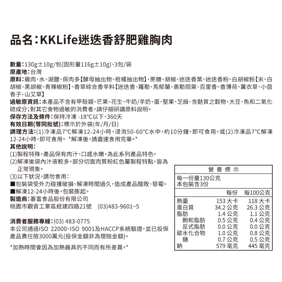 【KKLife】迷迭香舒肥雞胸肉 (130g±10g/包;3包/袋)1袋Frozen Processed FoodKKLife|紅龍官方直營店