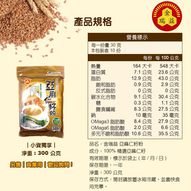 【金潤益】純 亞麻仁粉 300g 無糖 夾鏈袋|純天然 無其他添加 純素 高纖|亞麻仁籽粉 金瑞益亞麻仁粉 300g|金瑞益Powdered Drink MixesKREFOOD金潤益食品官方旗艦店