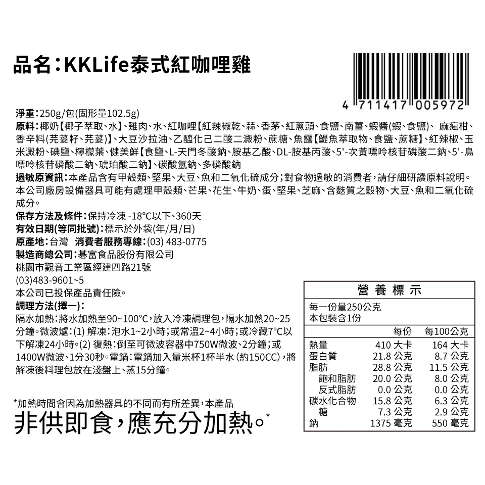 【KKLife】泰式紅咖哩雞 (250g/包)1包|2包Cooked FoodKKLife|紅龍官方直營店