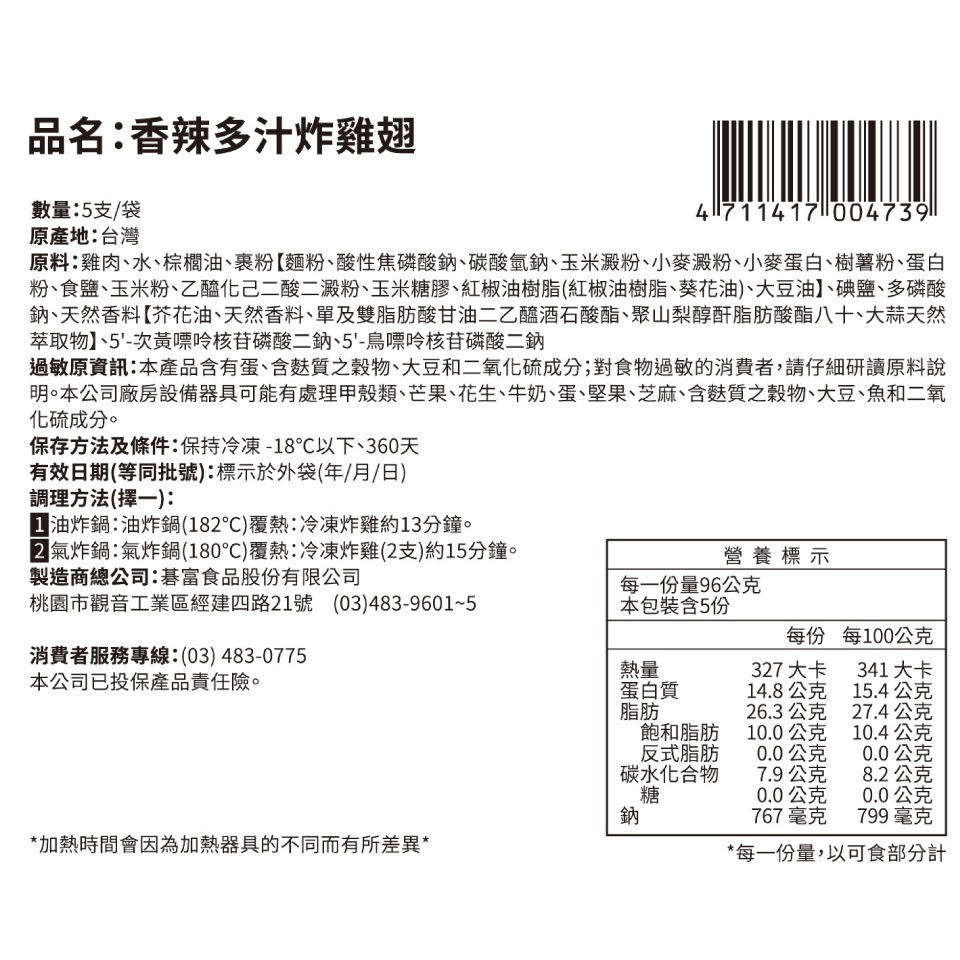 【紅龍】香辣多汁炸雞翅 (5支/袋)1袋Frozen Processed FoodKKLife|紅龍官方直營店