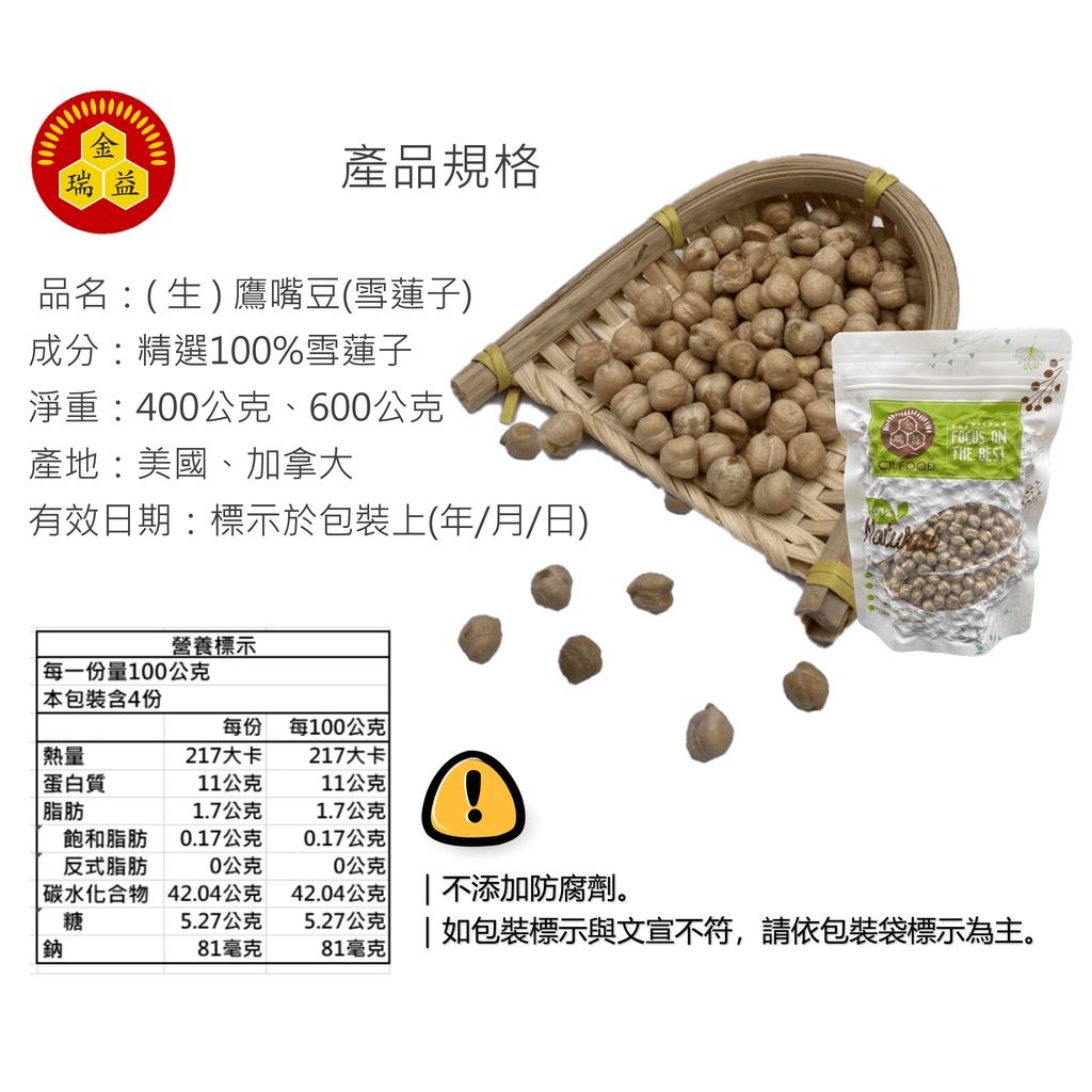 【金潤益】 雪蓮子 鷹嘴豆 600g 夾鏈包裝|穀物 埃及豆 雞豆 chickpea 金瑞益生 鷹嘴豆 600g|夾鏈包裝Dried GoodsKREFOOD金潤益食品官方旗艦店
