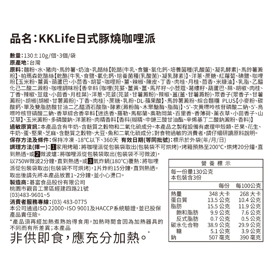 領券現折$30【KKLife】香酥鹹派 日式豚燒咖哩/火腿起司/田園南瓜/白醬松露(130±10g/個,3個/袋)白醬松露蕈菇派|日式豚燒咖哩派|香濃火腿起司派|田園南瓜香菇派Frozen Processed FoodKKLife|紅龍官方直營店