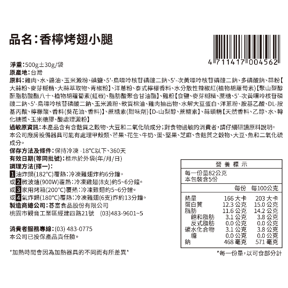 【紅龍】香檸烤翅小腿 (500g/袋)1袋Processed Meat & SeafoodKKLife|紅龍官方直營店