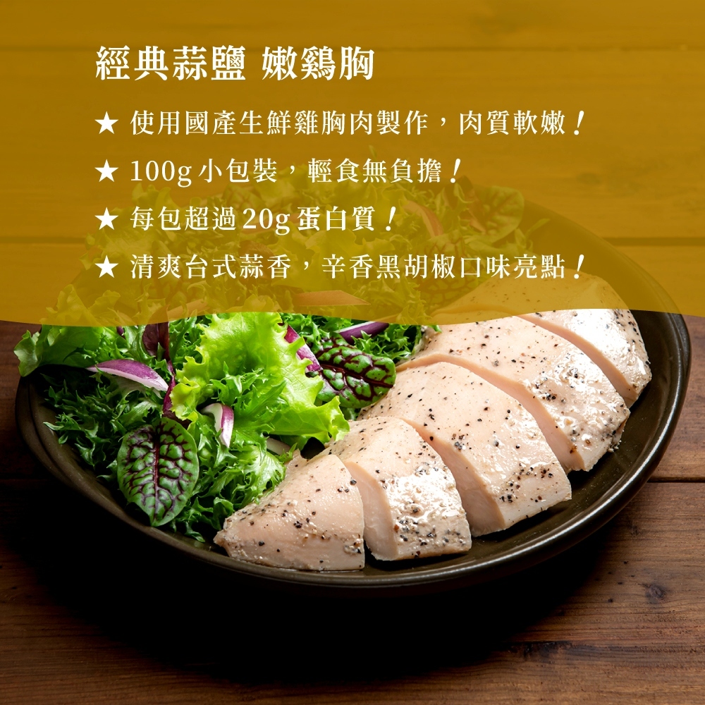 【金豐盛】經典蒜鹽嫩雞胸 100公克/包 即食雞胸肉【金豐盛】經典蒜鹽嫩雞胸 100公克/包 即食雞胸肉MeatKingrich 金豐盛