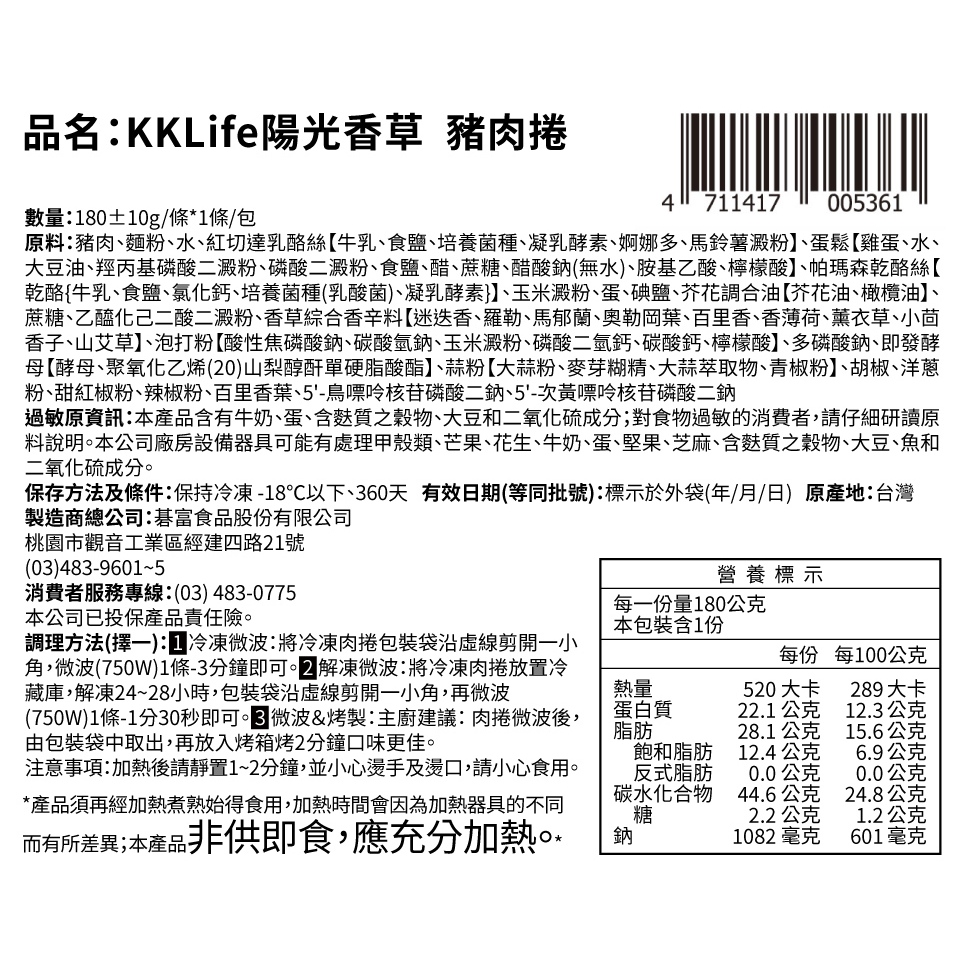 【KKLife】陽光香草 豬肉捲 (180g/包)陽光香草 豬肉捲Frozen Processed FoodKKLife|紅龍官方直營店