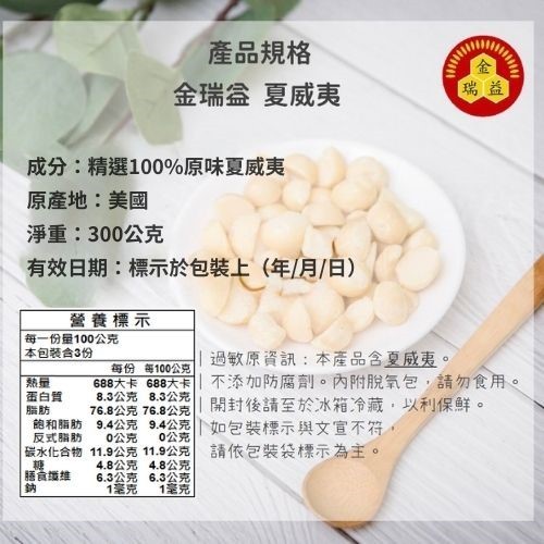 【金潤益】原味 夏威夷豆 300g|嚴選 天然 堅果 夏威夷果 金瑞益夏威夷果 300g|夾鏈包NutsKREFOOD金潤益食品官方旗艦店