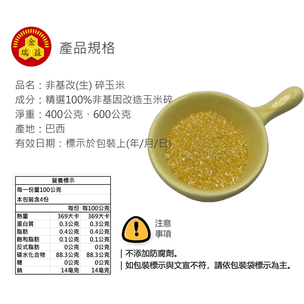 【金潤益】非基改 碎玉米 600g 夾鏈包|食品級 玉米角 玉米碎 穀物|金瑞益 碎玉米玉米碎 600g|夾鏈袋Dried GoodsKREFOOD金潤益食品官方旗艦店
