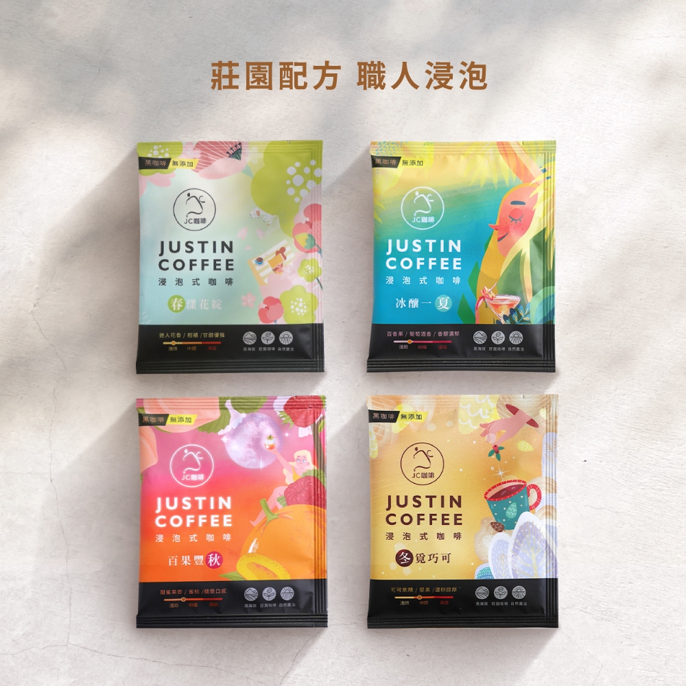 【JC咖啡】莊園配方 職人浸泡咖啡│淺-中焙(10g/包)春/夏/秋/冬四季風味任選春漾花綻►10包(10g/包)-無外盒|春漾花綻►10包(10g/包)-含外盒|春漾花綻►20入禮盒(10g/包)含提袋|冬覓巧可►20入禮盒(10g/包)含提袋|百果豐秋►20入禮盒(10g/包)含提袋|冰釀一夏►20入禮盒(10g/包)含提袋|綜合口味►20入禮盒(10g/包)含提袋|冰釀一夏►10包(10g/包)-無外盒|冰釀一夏►10包(10g/包)-含外盒|冬覓巧可►10包(10g/包)-無外盒|冬覓巧可►10包(10g/包)-含外盒|百果豐秋►10包(10g/包)-無外盒|百果豐秋►10包(10g/包)-含外盒|綜合口味綻►10包(10g/包)-無外盒|綜合口味►10包(10g/包)-含外盒|春漾花綻►森林禮盒(20入)含提袋&卡片|冬覓巧可►森林禮盒(20入)含提袋&卡片|百果豐秋►森林禮盒(20入)含提袋&卡片|冰釀一夏►森林禮盒(20入)含提袋&卡片|綜合口味►森林禮盒(20入)含提袋&卡片CoffeeJC咖啡品牌館│新鮮烘焙│精品莊園咖啡豆專賣店