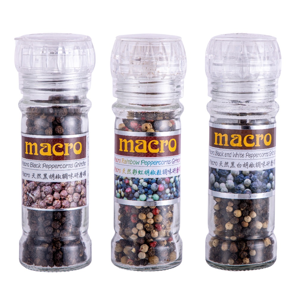 【MACRO 馬可】 天然胡椒粒調味研磨罐 黑胡椒/黑白胡椒/彩虹胡椒 |廣紘直營白胡椒研磨罐 45g|黑胡椒研磨罐 30g|黑胡椒研磨罐 50g|黑白胡椒研磨罐 45g|彩虹胡椒研磨罐35g|黑胡椒研磨罐 165g (無法填充)|黑胡椒&玫瑰鹽研磨罐60g|黑白胡椒&玫瑰鹽研磨罐70g|彩虹胡椒&玫瑰鹽研磨罐70gSeasonings & CondimentsMACRO_生酮、烘焙、進口食材、健康食材、減糖 廣紘原廠直營