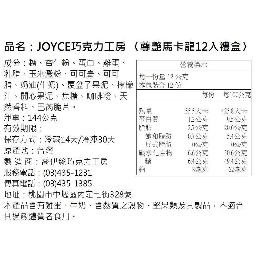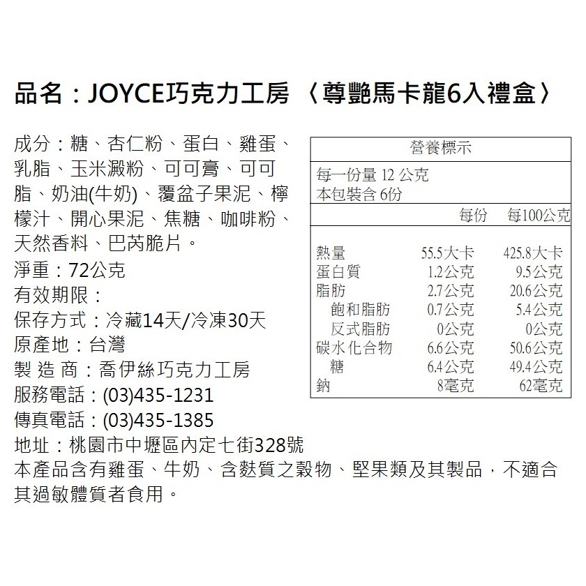 Joyce Chocolate 尊艷馬卡龍禮盒6入|12入|6入+提袋|12入+提袋PastryJoyce Chocolate