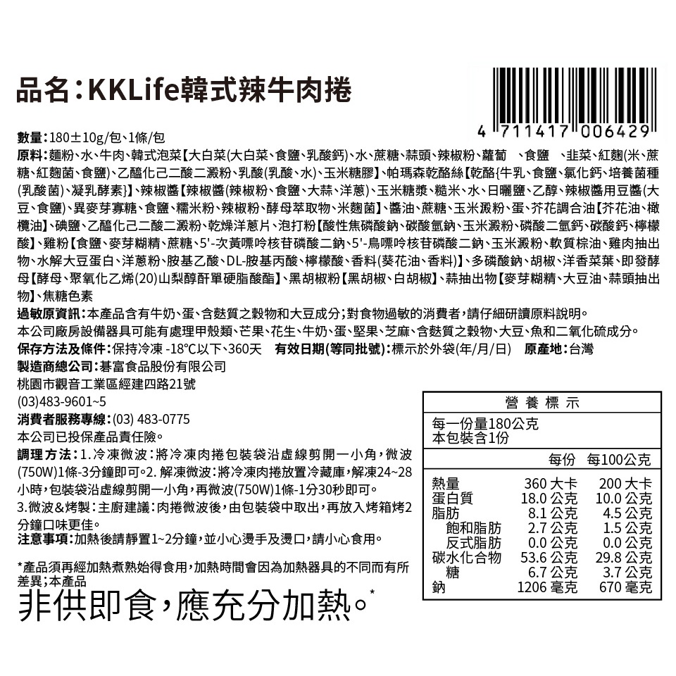 【KKLife】韓式辣牛肉捲 (180g/條)1條Frozen Processed FoodKKLife|紅龍官方直營店