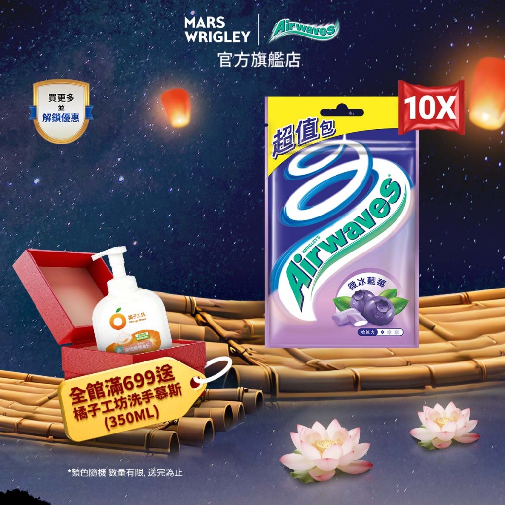 【Airwaves】超涼無糖口香糖超值包 微冰藍莓 10入(62g/包) 多口味 提神【Airwaves】超涼無糖口香糖超值包 微冰藍莓 10入(62g/包) 多口味 提神Sweets & CandyMARS官方旗艦店(M&M’S/士力架/麥提莎/德芙)